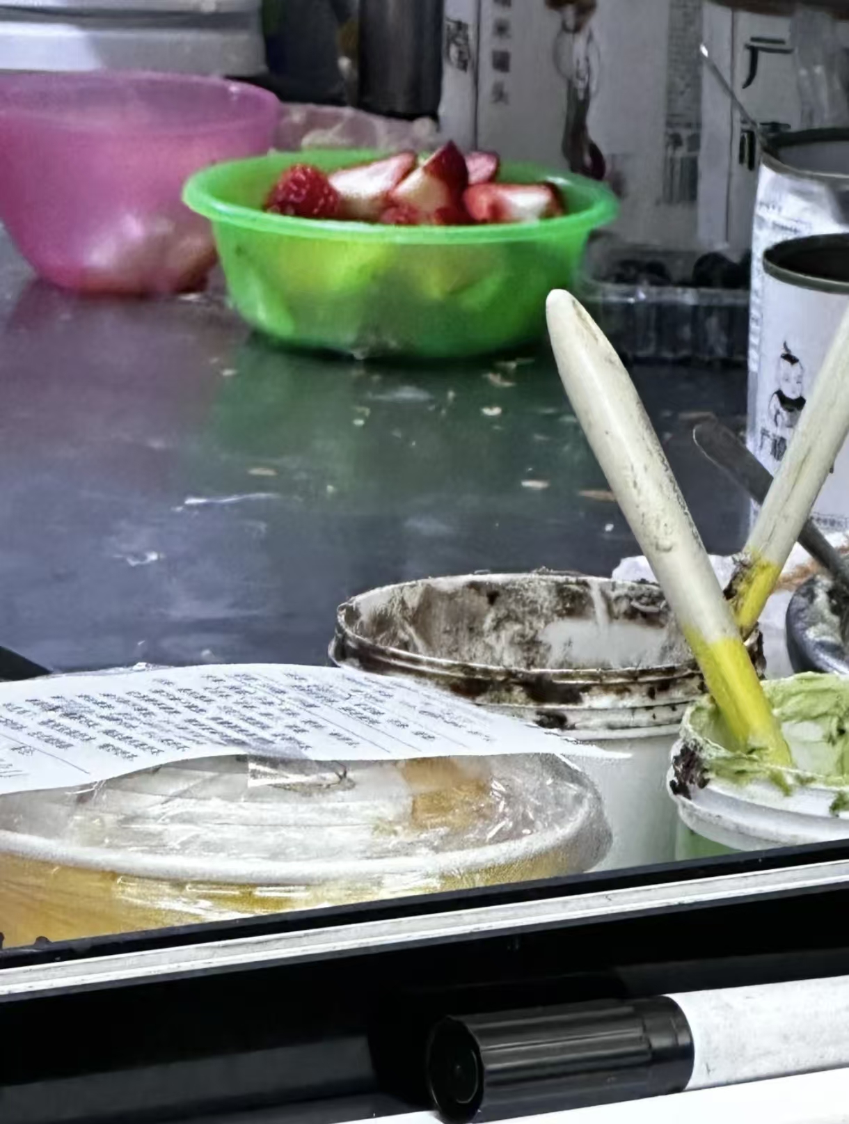本身店里是有清洗池的,可水果基本不洗,芒果、菠萝、火龙果、哈密瓜,削皮是最后的倔强,可蓝莓、草莓、葡萄不清洗这合适吗?也许商家怕水果洗后会带水,蛋糕不好后期制作,饮食最注重的就是卫生,可商家却忽略了这一点,把顾客只当成敛财工具,根本不管健康!
